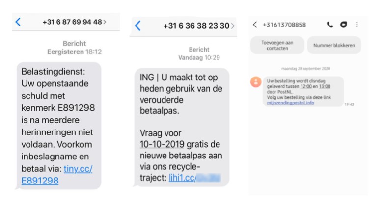 Daarnaast is het mogelijk dat je zelf vreemde belletjes en/of berichtjes van “PostNL”, “jouw bank” of zelfs “de belastingdienst” krijgt met de vraag of je even kan inloggen omdat er iets mis zou zijn met je account of omdat je nog een openstaande rekening moet betalen.